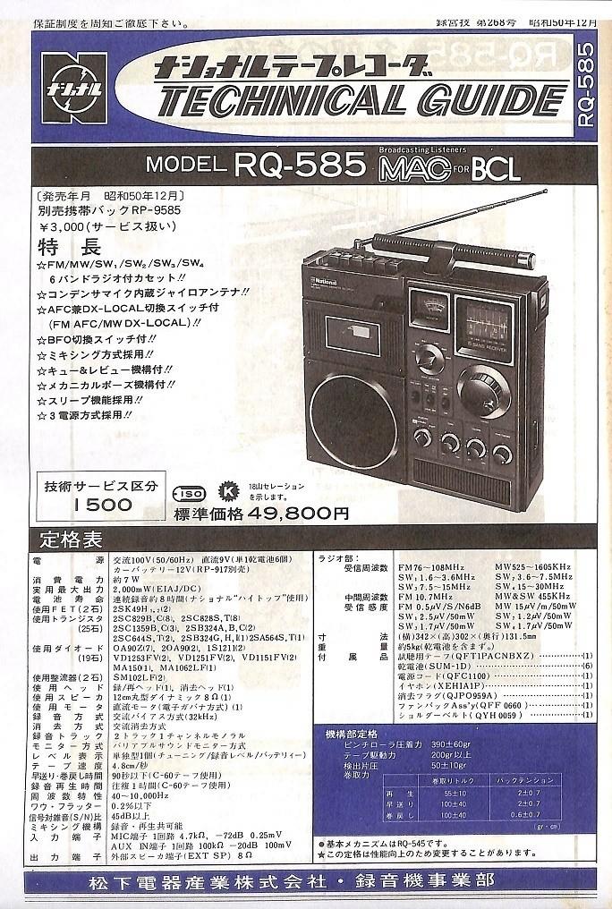 松下585的无线电部分的基本设计可以说是RF-1188。它具有类似的拨号机制和开关,甚至在能力方面。我很惊讶它甚至有一个 BFO。它还具有频率微调功能,在这个意义上超过了RF-1180。陀螺天线和麦克风结合的设计也很出色。