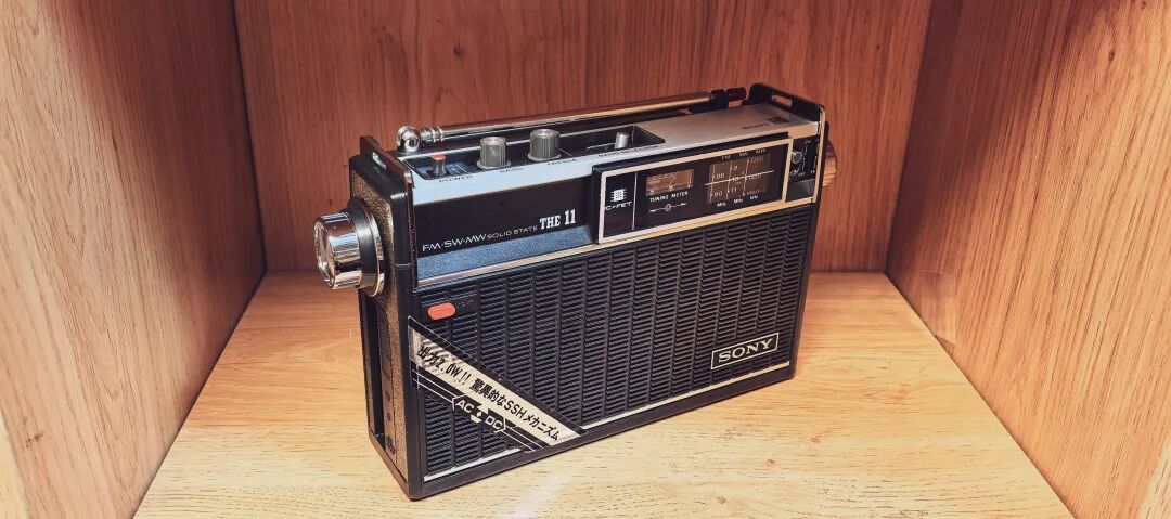 THE 11面向发烧广播爱好者(BCL),具备高灵敏度与稳定接收性能,外观为70年代经典的金属质感面板+大刻度窗+长拉杆天线。作为11系列最后一款,保存完好的ICF-1100在二手市场有稳定的爱好者群体,是70年代日系便携机的代表性藏品。