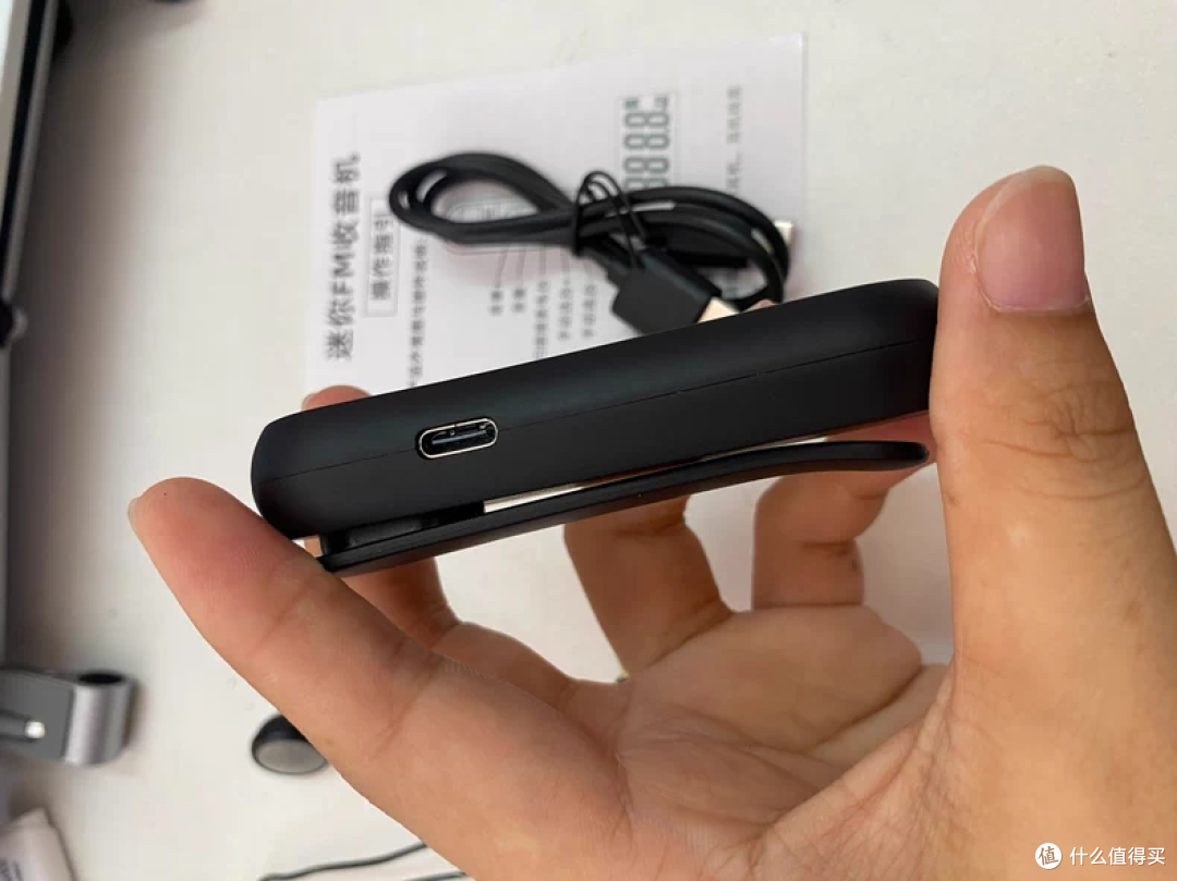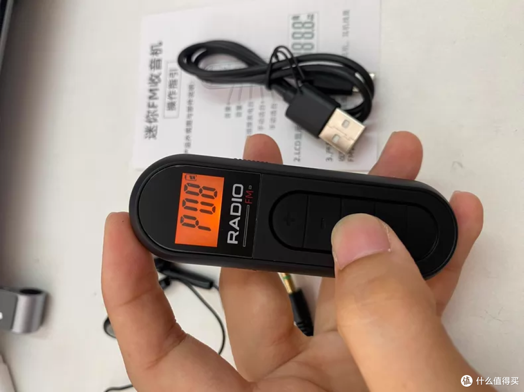 迷你fm小收音机可充电fm波段76-108,标配带耳机充电线,不能外放只能接耳机听,尺寸884711mm.音质好,尺寸小。