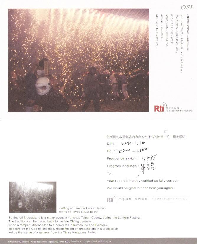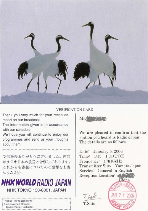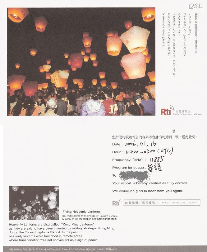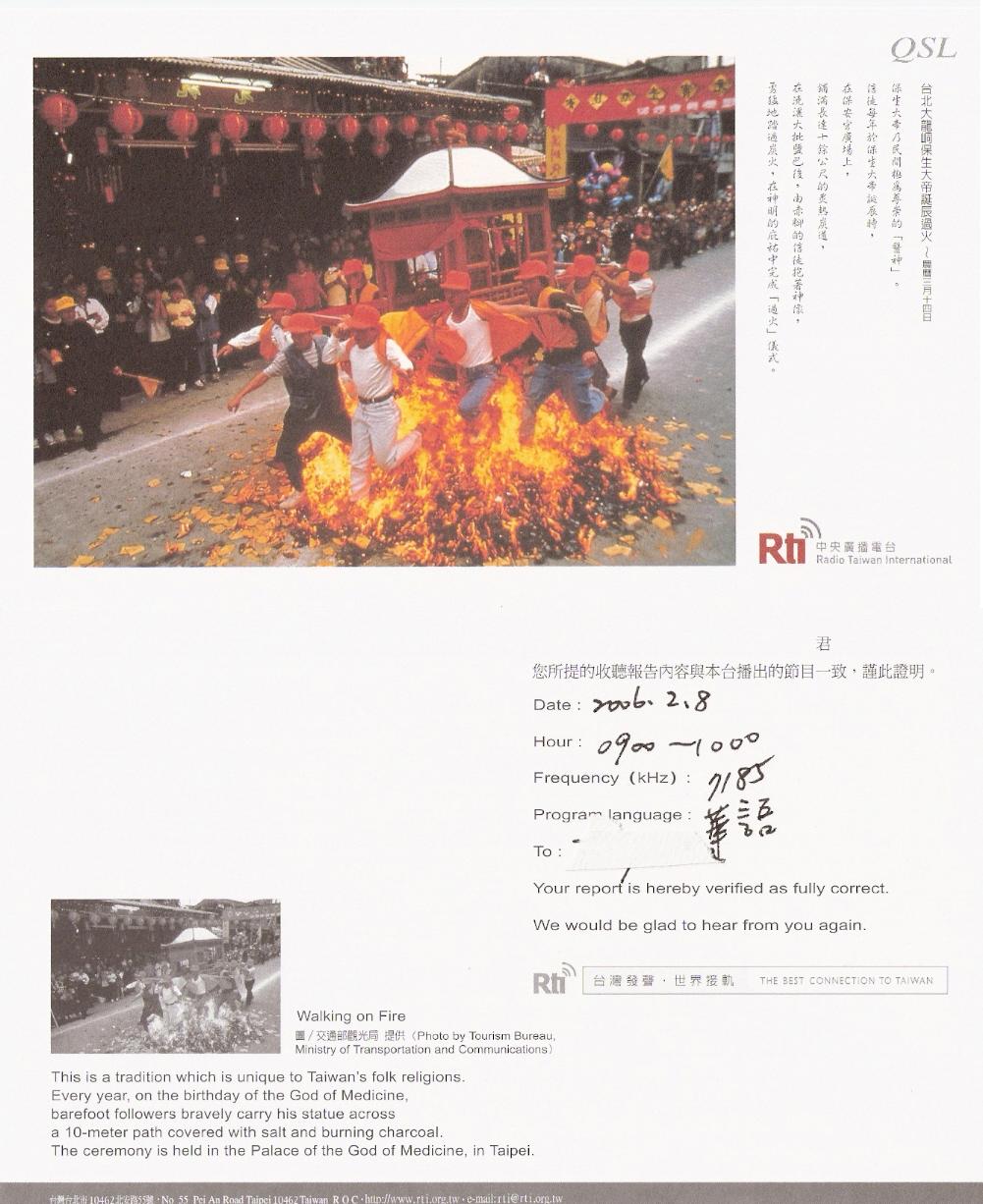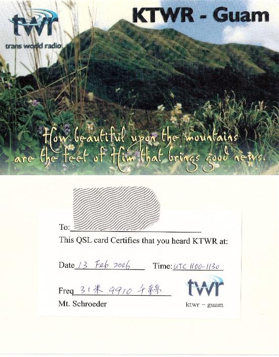 第二张(我唯一的一张实寄的QSL卡)