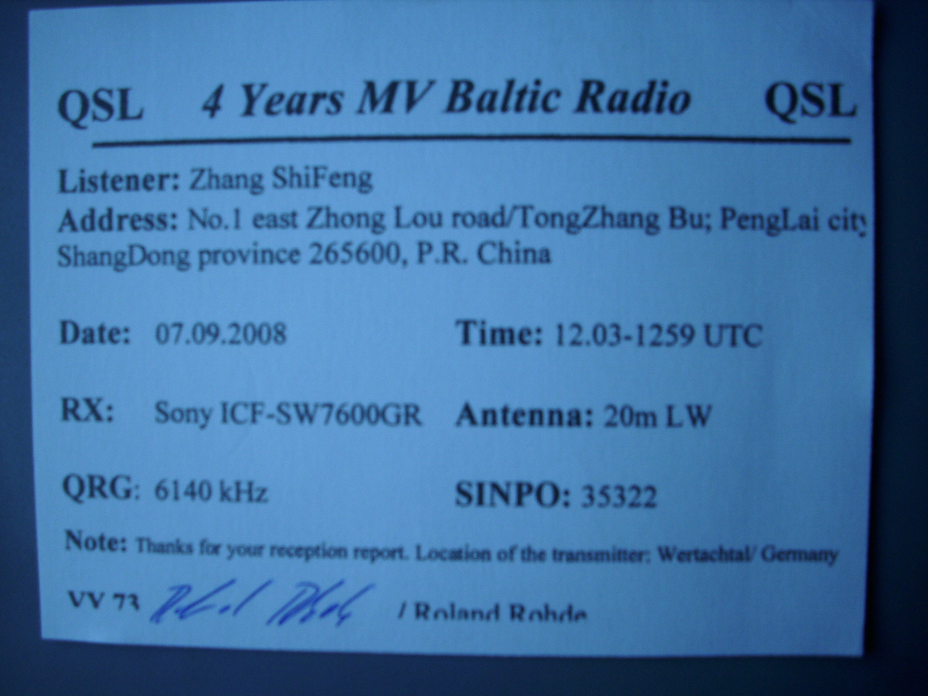 ▲MV Baltic Radio的qsl卡【需要一张IRC或一美元】![]()