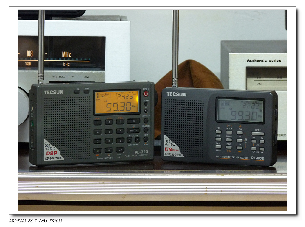 德生把DSP性能到了PL-606这一代确实是发挥到了极致,刚拿到手对这个用两个电池的小机子不存在有什么特别的期望,甚至还怕跟PL-360一样会灵敏度稍低,因为我觉得这个机子或许德生就是定位在便携及有延长天线而已,但是上手ETM后我立刻对这个机子刮目相看了,居然比我手上的PL-380还好,FM灵敏度跟手头的第一代PL-310真是不相上下,甚至感觉还稍好,跟310的PK是在同样用本机天线并同样长度的情况下的,也没接上本机配备的延长天线。声音方面也非常不错,但是在音量开到最大时就出现了失真了,但一般情况下谁又会期望这样的小机子发出超大音量的,至少在正常音量下声音非常的不错,这个观点是有另外的一位玩HIFI音响的朋友在我这里听这机子后所说的,他挺惊讶这么小的机子能有这样的声音。所以我觉得这倒没什么问题,或许这跟两个电池供电也是有关系的,但是德生已经是在两个电池的情况下把机子调配到最适当的了,从这个机子我确实挑不出任何不好的。现在就经常性的把玩606了,310暂时失宠,因为606更便携,机身的线条比310更圆滑,所以拿着更舒服。个人觉得这个机子唯一不足就是无法背景灯常亮,因为我喜欢躲在被窝里看着屏幕,就只能鸡蛋里挑骨头了,呵呵。