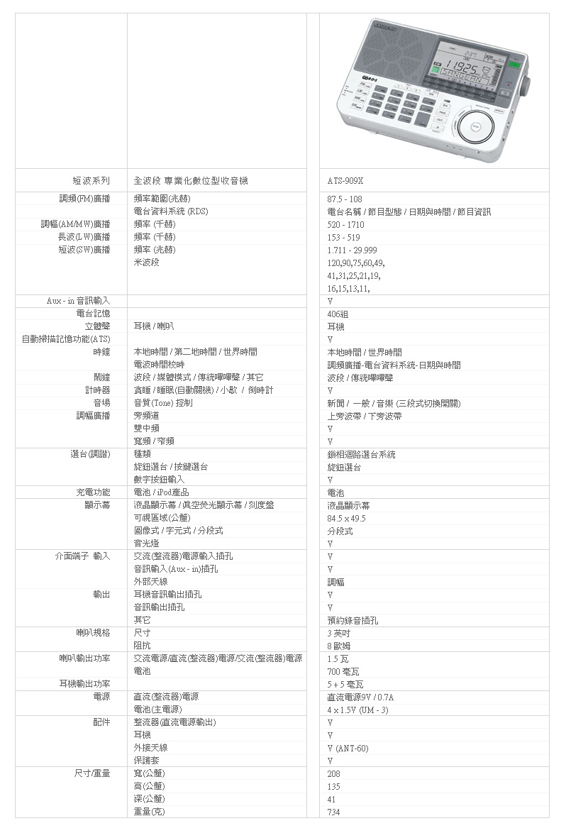 ATS-909X 全波段专业化数字式收音机调频立体/调幅/长波/短波