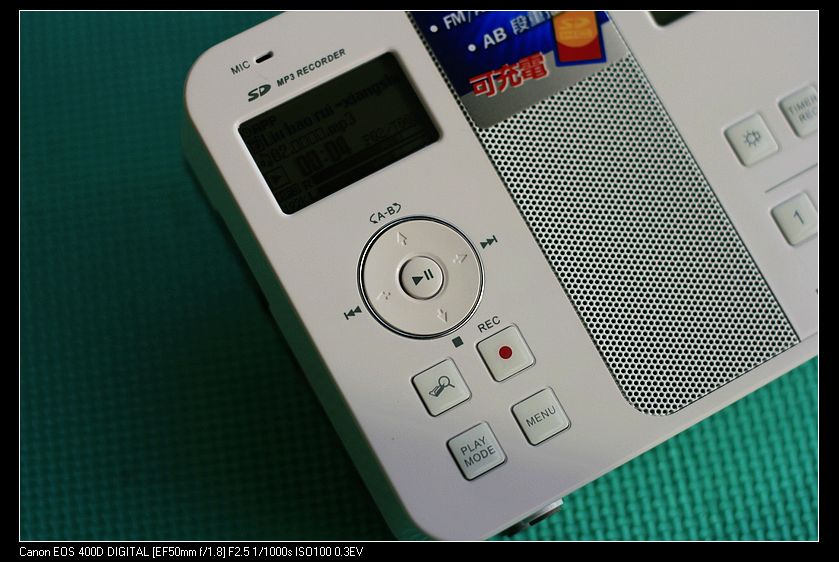 SD卡录放音功能、记忆播放(RESUME)功能、A~B段重复播放功能、自动定时录音功能、自动开关机