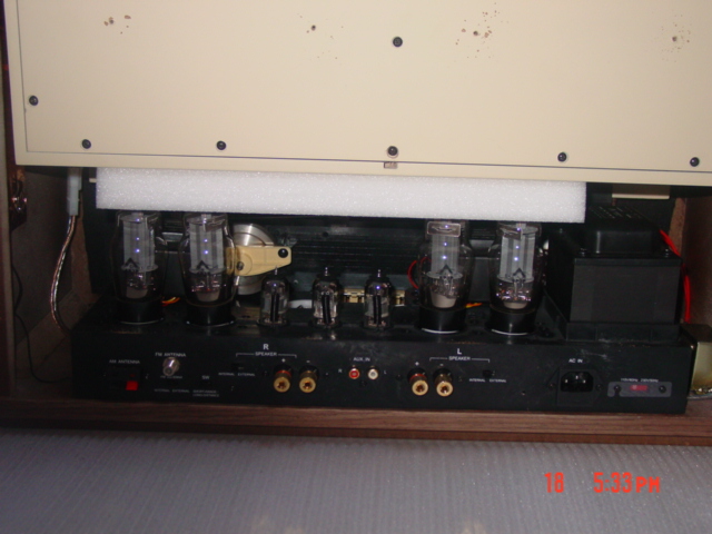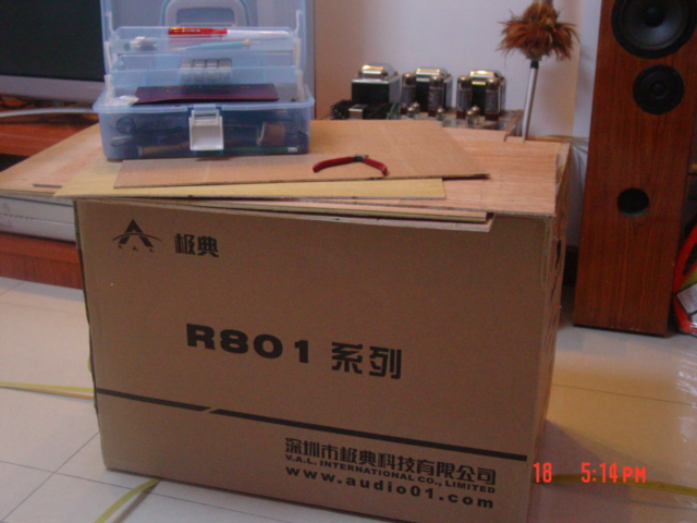 看到了白色的泡沫板,卡的还挺紧的,抽出来还有些费事,我真担心我把电子管的座儿给弄松了。还好,还好……来不及欣赏里面的东西了,听机为上!装好后背板吧。