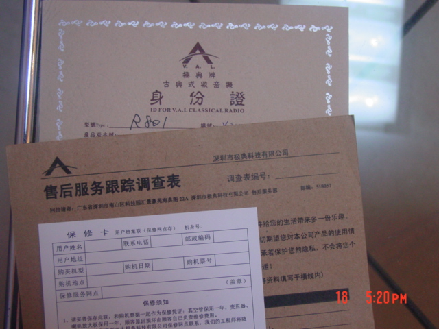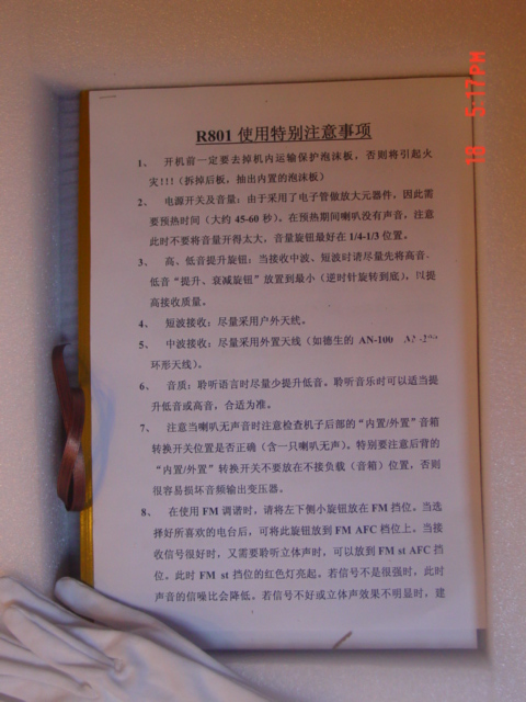 花了俺大半年积蓄购买的极典牌R801超高级收音机终于收到了,呵呵。