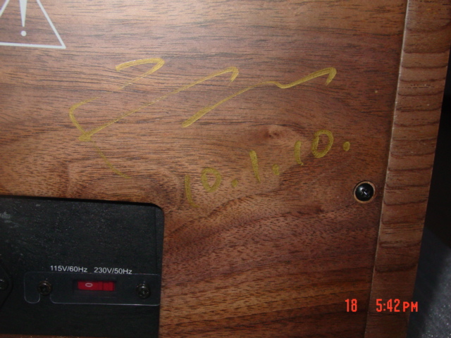 在收音机的背板上,哈哈,这可是艺术大师曾总的亲签名的艺术作品哪!再看那时间10.1.10!前后看国庆节,两边看双十节!一统江山,意义之深远可见一斑。