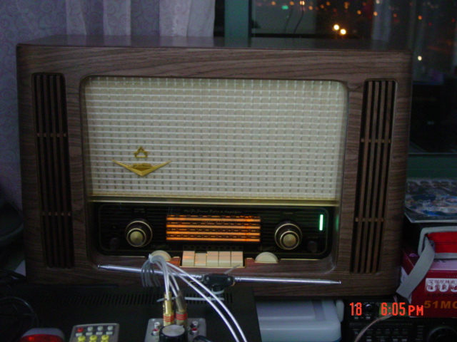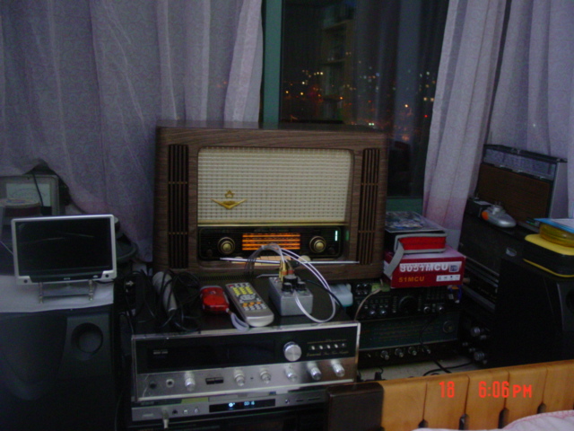 开机,通电。按下FM钮,一分钟后,喇叭里传来熟悉的声音。调一调台,各个台都是能收到的,呵呵……接着看看中波,短波,嗯,都能收到都市特有的呜哩哇啦的噪音,证明这个收音机的功能都是正常滴。