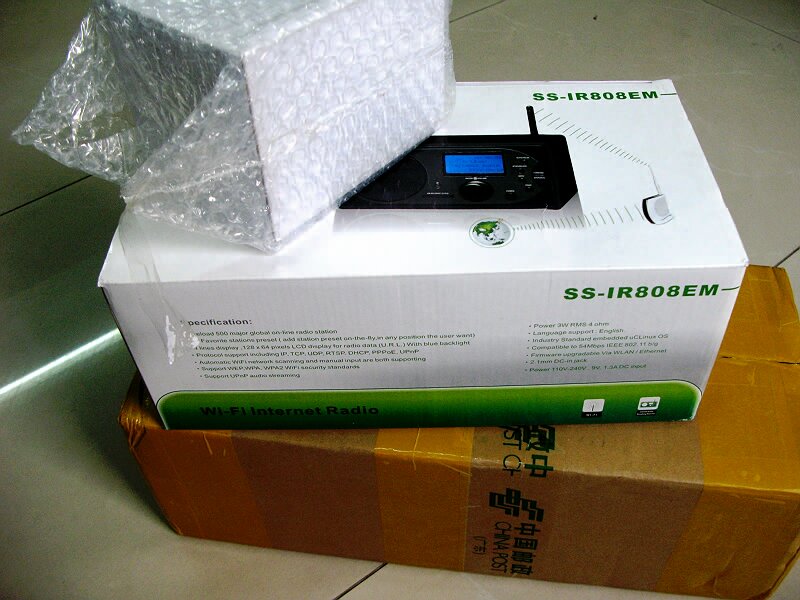 一直以来对网络收音机很感兴趣,无奈其价格高,国内鲜见,一直没有下手!近日,坛中“享受广播”在推广其公司为国外公司代工的网络收音机,价格还可以接受,看买过的都反映不错,而且“享受广播”答应同时买两台可以免快递费,便和坛中tx商量一起购买。
