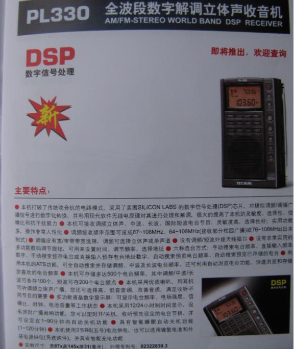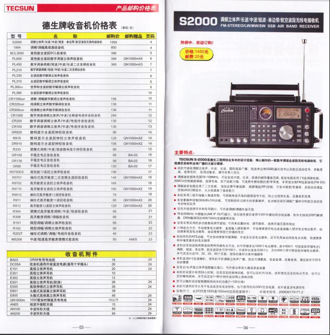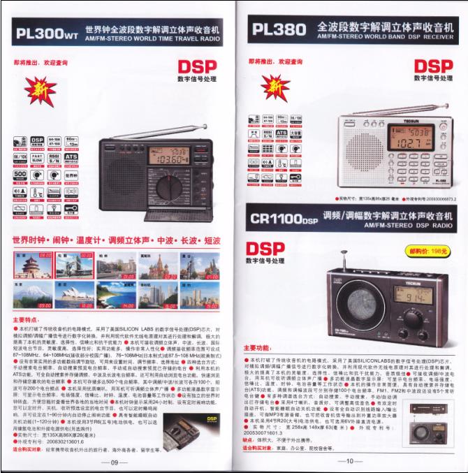 德生09版产品目录,即将上市的新机器 广播发烧网 发布于 2009-5-5 00:00 收音机 S2000介绍。 PL210,PL310,PL330。 PL300wt,PL380。 PL210 PL310 PL330 PL380 PL300wt #德生 文章目录 × 推荐阅读50~70年代国产收音机的几款经典机型中国收音机百年史SONY 最后一台高端全波段收音机的前世今生浅谈收音机的百年发展历史固件版本为078版本的山进909X2收音机的整体表现不错国产古董级晶体管收音机——东湖牌收音机新机亮相--德劲DE1108小米LED灯下的德生PL-230德生PL-330拆机高清大图从上海滩起家的中国收音机100年史,背后是集成电路的发展史 上一篇 国内广播短波频率A09 下一篇 德生PL300WT万用表收音机