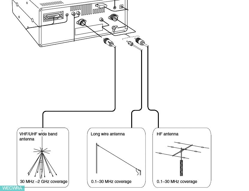 (b) 接收0.1至30 MHz.用的长线天线(500欧姆:RCA PHONO / 莲花插接口)