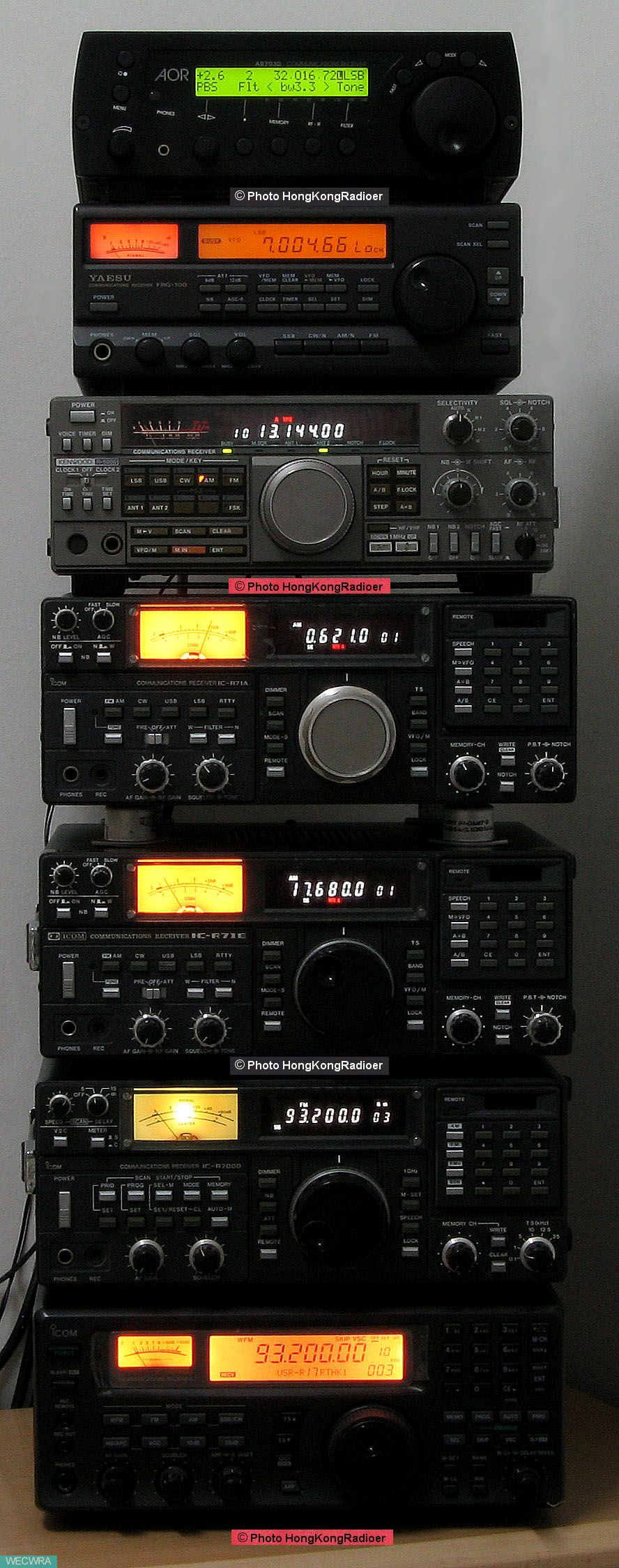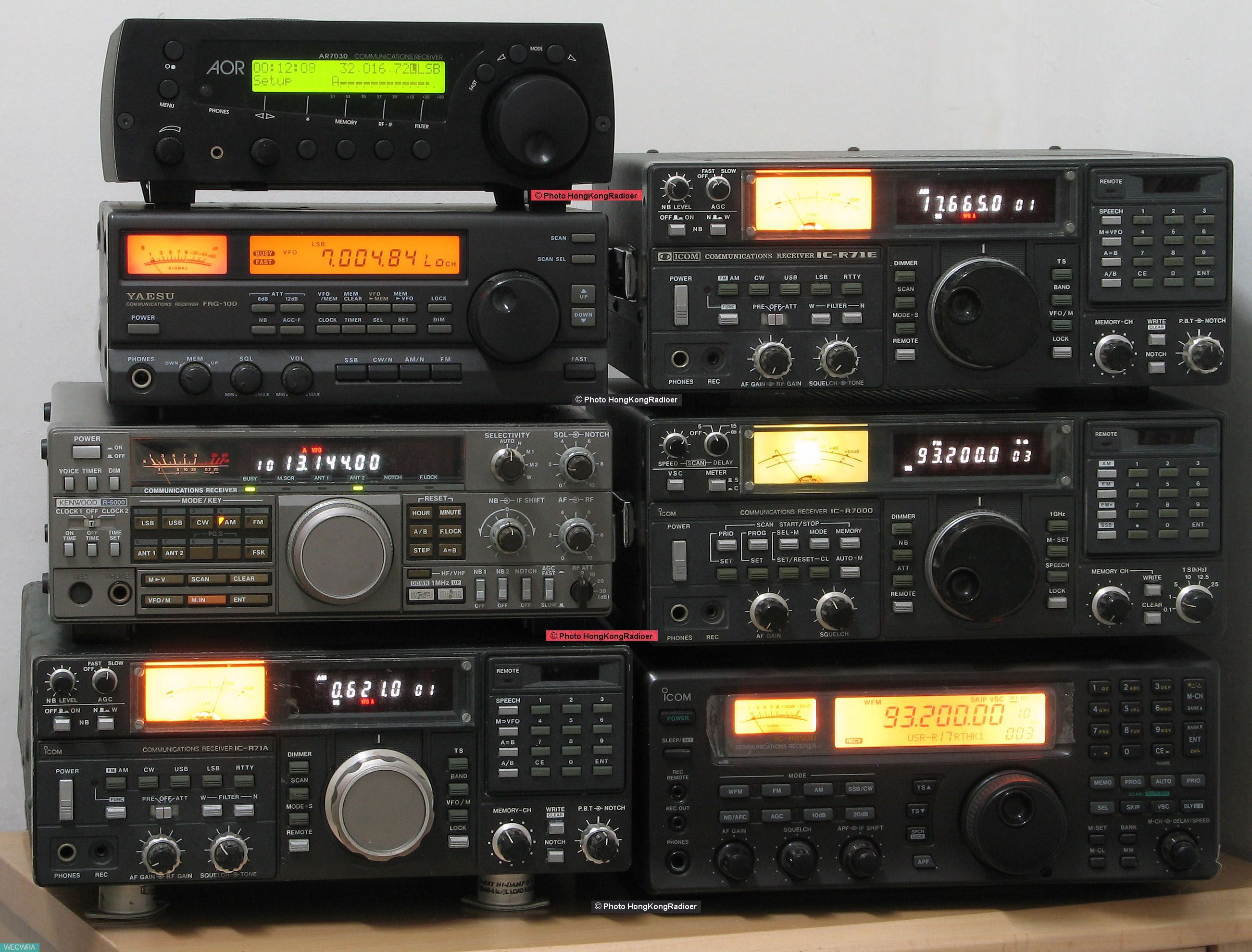 左上至下:AOR 7030, YAESU FRF-1000, KENWOOD R-5000, ICOM IC-R71A