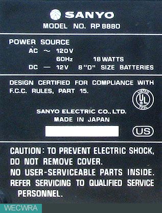 我这台三洋RP-8880接收机,除了高频增益电位器在旋至将近最大时有一卡嚓声外,其它各音量、高低音电位器及开关在使用时都不会发生杂音,各波段均能正常收音,据悉这是现存的RP-8880机子中什为少见的,若不是背板电源接线盒缺了一盖子,这机的收藏价值应可评为5星级别。
