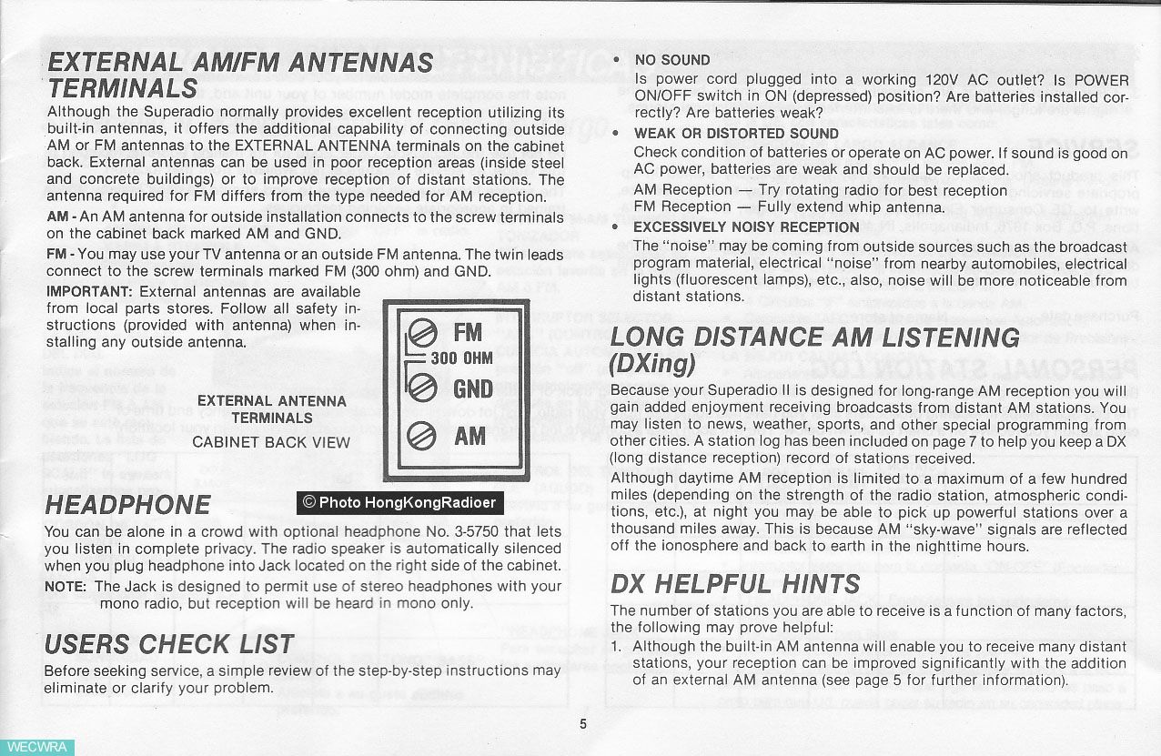 结语: General Electric Super Radio II 中波机王不但接收中波的灵敏度过,接收FM的灵敏度也很高。更为难得的是这机在进行中波DX接收的同时,能提供传真度极高的音质,接收中波有如收听FM电台的效果,蓬蓬声不绝于耳,是一台值得终身拥有使用及收藏的机子。