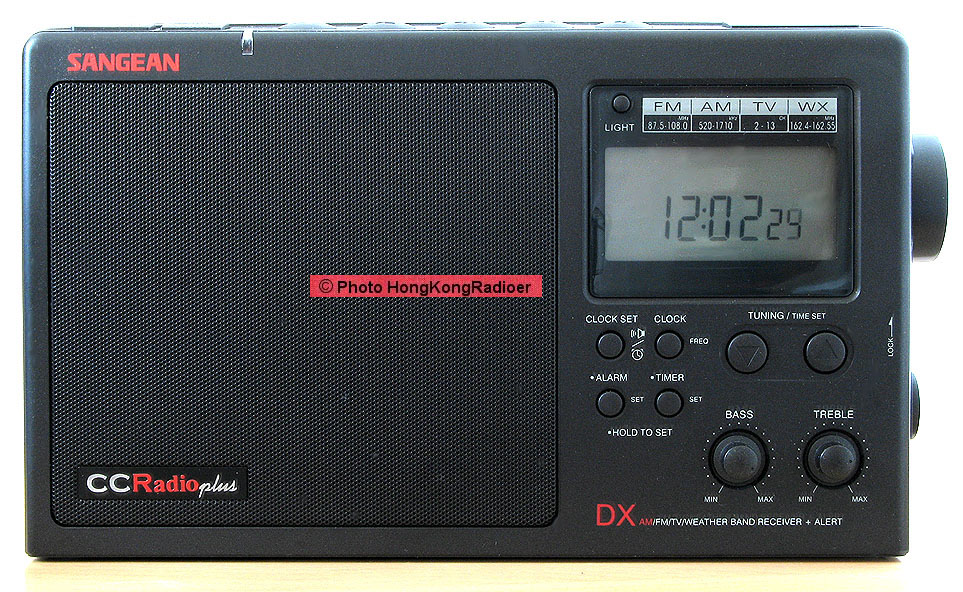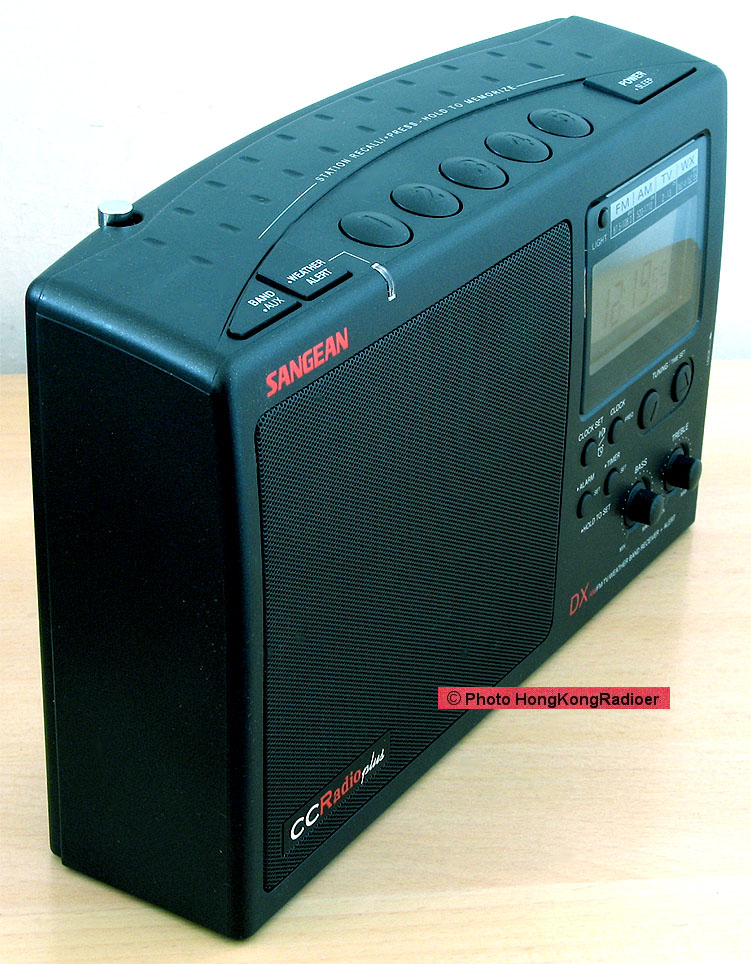 CCRadio plus 除中波(中波是520 – 1710千赫的)及FM波段外,还有电视和天气波段、有时钟及响闹、可使用交流(110V)、直流电、可以充电NI-MH电池,可另外配置的太阳能电源。机身上没手把,但机背顶部设有空位可供手提机子之用。。这机巧能之多,是三机中之冠。