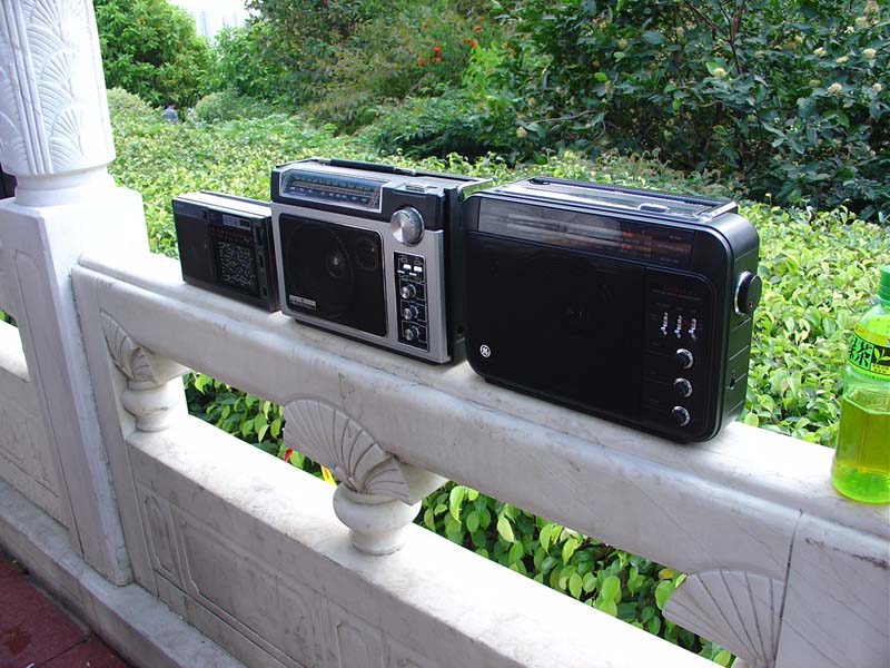 在深圳莲花山一次测试框形天线的活动中,我把这台GE SR2 型及另一台 SR3型收音机都带到山上收听,结果在测试框形天线的同时,发现有一信号微弱的电台,其它的机子离开了框形天线都不能收得这弱台,只有这两台美国中波机王 GE SR2 和 SR3 及另一台由ARVIN网友带来的曰本中波机王SONY EX-5,能够不利用框形天线, 只用机内的磁棒天线就能够清楚地接收这弱台了,所以当时大家都称这三台机是名符其实的中波机王;