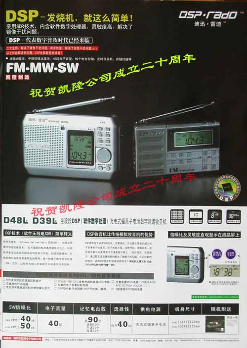 凯隆D48L和D39L广告 广播发烧网 发布于 2008-3-10 00:00 收音机 文章目录 × 推荐阅读50~70年代国产收音机的几款经典机型中国收音机百年史SONY 最后一台高端全波段收音机的前世今生浅谈收音机的百年发展历史固件版本为078版本的山进909X2收音机的整体表现不错国产古董级晶体管收音机——东湖牌收音机新机亮相--德劲DE1108小米LED灯下的德生PL-230德生PL-330拆机高清大图从上海滩起家的中国收音机100年史,背后是集成电路的发展史 上一篇 全国首款福音专用收音机 下一篇 PL-600开包图加短波简单评测