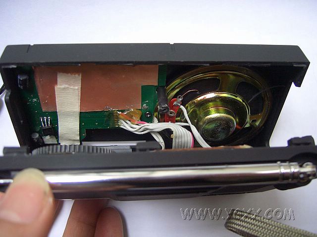 凯隆KK-9906S校园广播FM立体声十波段收音机分解 广播发烧网 发布于 2006-2-19 00:00 收音机 当时买这台机是冲着它有立体声和48块的价钱买的,性价比颇高。机器的手感不错,插进耳机后自动转换到立体声接收状态,随机配有耳机和外接天线,天线估计有3米长。技术指标:频率范围 调频 82-108 Mhz 调频1 70-82 MHz 中波 526.5-1606.5 Khz 短波 7.10-21.85 MHz2. 短波米波段 SW1 7.10-7.30 MHz SW2 9.50-9.90 MHz SW3 11.65-12.05MHz SW4 13.60-13.80 MHz SW5 15.10-15.60 MHz SW6 17.50-17.90 MHz SW7 21.45-21.85 MHz 3.噪限灵敏度 调频 优于 18dB 调频1 优于 18dB 中波 优于 70dB 短波 优于 40dB4.单信号选择性能 优于 20dB5.电源 直流3伏 内装电池 2节5号电池 外接电源 3伏300mA6.最大消耗电流 小于150mA7.机内扬声器 Φ57mm 12Ω0.5W8.外接耳机 Φ3.5mm 32Ω9.尺寸 118 x 72 x 25mm10.重量 150g (不含电池) 有24小时内自动开机,并在开机后1小时内可以自动关机功能,夜间延时照明指示!包装正面:收音机(含皮套)正面:收音机(含皮套)正侧面:收音机(含皮套)顶部:收音机正面:换个角度:再换一个角度:局部特写:收音机背面:收音机顶部:天线:收音机侧面一:收音机侧面二:连耳机连天线的大合照:拆开少少了:后壳:线路板正面:线路板背面:收音机的灵魂:看不清型号换个角度看看:功放IC: #收音机 #广播 #FM 文章目录 × 推荐阅读50~70年代国产收音机的几款经典机型中国收音机百年史SONY 最后一台高端全波段收音机的前世今生浅谈收音机的百年发展历史固件版本为078版本的山进909X2收音机的整体表现不错国产古董级晶体管收音机——东湖牌收音机新机亮相--德劲DE1108小米LED灯下的德生PL-230德生PL-330拆机高清大图从上海滩起家的中国收音机100年史,背后是集成电路的发展史 上一篇 中国海事SSB固定频率 下一篇 DIY蛛网天线 发布评论