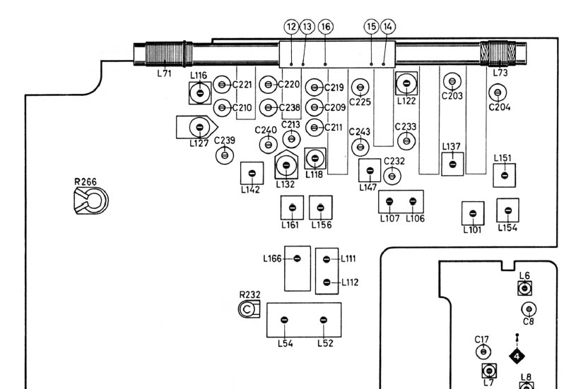 16. 采用了12个晶体三极管及11个二极管,晶体三极管的编号是:AF121 (5枚), AF106, AF126, AC176K, AC153K, AD161, BC308B及BC238C;