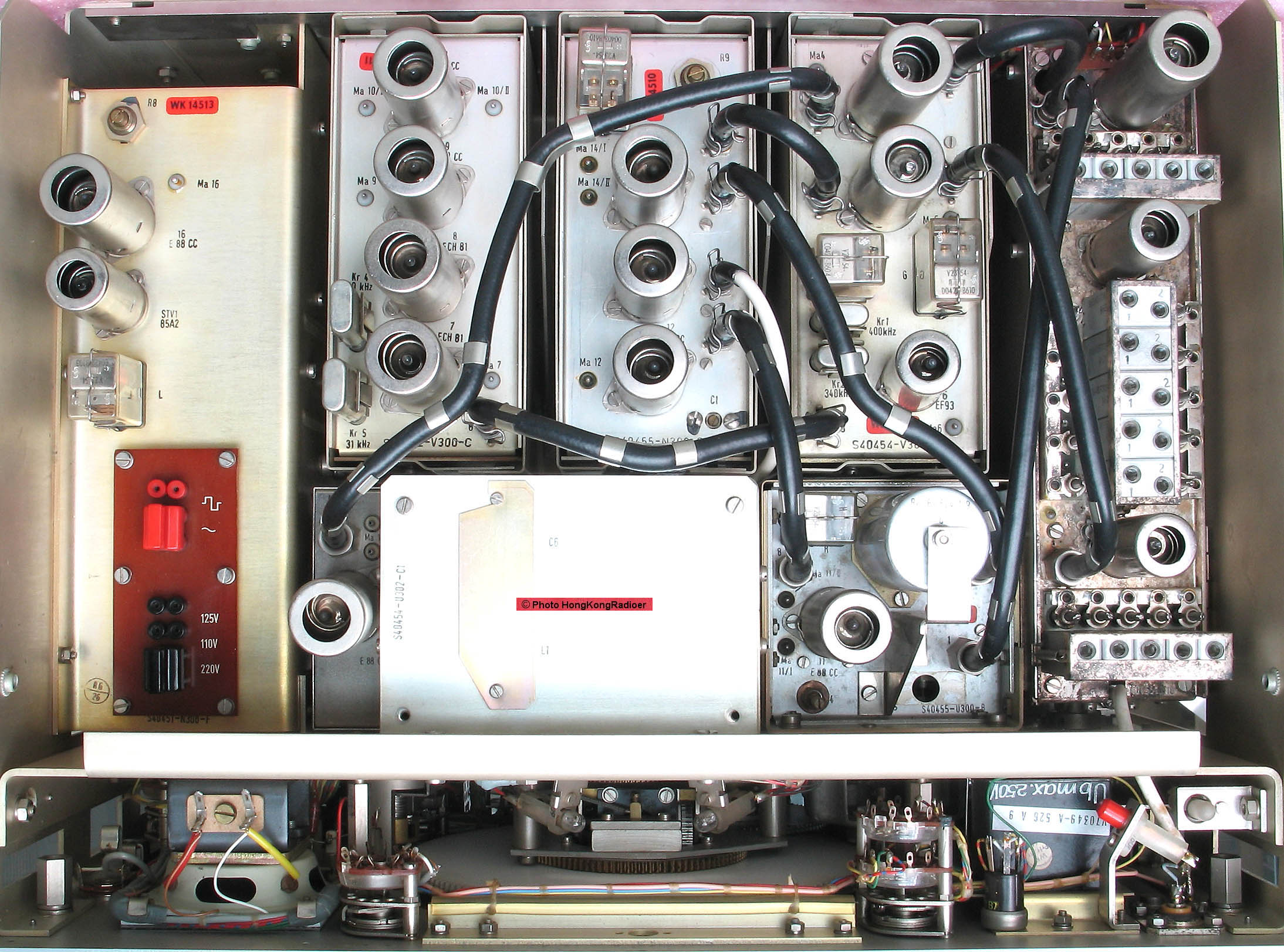 28. 本机用了17个电子管,身上全部都印有西门子/德国制造等英文字样,型号分别是: E88CC (6922) 八个,ECH81 (6AJ8) 五个,EF93 (6BA6) 三个,85A2 一个;