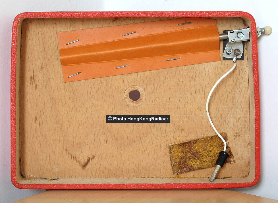 13. 机子内部装有夹板,可称得上是木箱收音机;