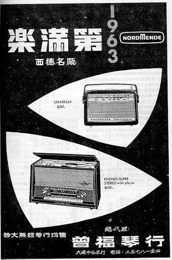 当年香港也有乐满第的机子卖,1963年这台NORDMENDE STRADELLA 机子卖港币$265,现在看来好象很便宜,但1963年香港打工仔的平均工资约在百多二百元之间,这售价已是不少人一个多月的薪金了。