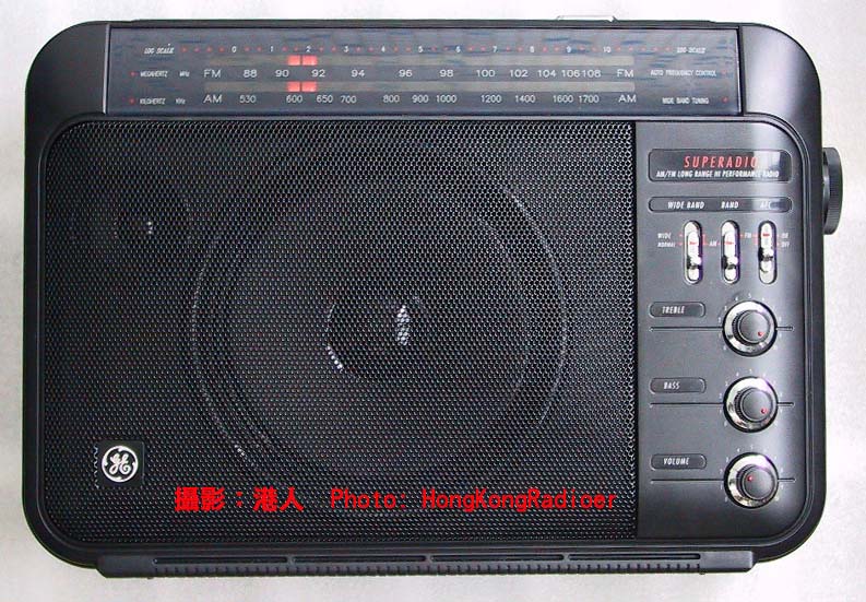 至于GE 超级收音机三号,是这系列的最新款式,中波波段已由550 – 1600 KHz. 改为北美洲的 530 – 1705。可惜这GE SR3在接收性能上却未能超越其前者SR2,SR3接收弱台时信噪比低于 GE SR2。超级收音机三号 SR3 由中国制造,可变电容器不是空气式的,可能厂家是为了节省成本而推出这型号。不过这机唯一比 GE SR2 好的地方,就是在音频部份作了改善,音质比 GE SR2 好些,特别是在没有干扰的地方接收中波电台时,不向旁人说清楚,人家还以为是在接收FM广播,音质比一般小型机子接收FM电台时还要好。我觉得SR2 的外型比 SR3 好看一些, SR3 的外型稍觉呆笨: