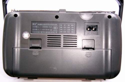 外观上,显得圆滑简洁、线条工整,刻度盘白色,辅助绿色两色印字,白色的频率表非常清晰别致,加上橘色的塑料指针和频率表上的波段指示,给人很美的感觉。