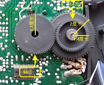 上图中,若是能修改一下主动轮的设计,减小主动轮的传动齿轮直径,再增加两个小传动轮(同时增加两个是考虑不改变调谐旋钮的旋动方向),如下图所示,这样的话,调谐效果将得到很大改观,R-404的整机实际性能也将大幅度提高...