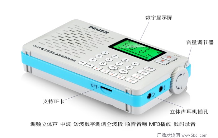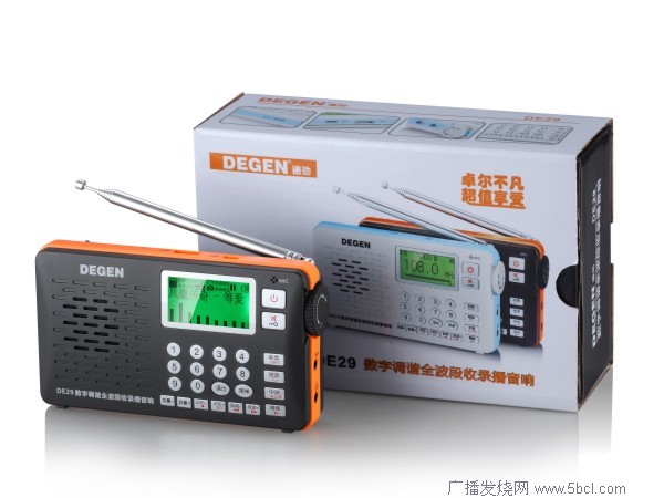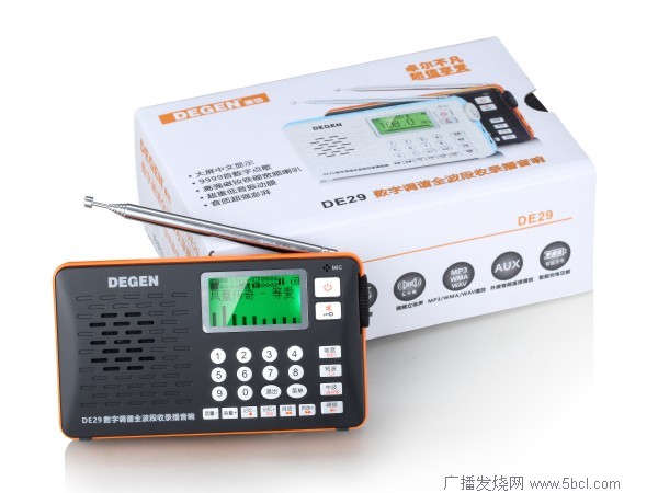 DE29历经德劲工程师千锤百炼,精雕细凿,将高端高性能DSP全波段数字调谐、数码录音、U盘/TF卡MP3播放、电子书、万年历功能完美融合,配以点阵大屏中文显示、数字点歌及频率直接输入和钟控开关机,全能表现及人性化操作一览无余。内置顶级超重低音振动膜及高强磁钕铁硼宽频音响型喇叭,纯美强劲音质瞬间释放,引爆激情。掌上型设计,携带ZY写意,外观造型和配色经典中蕴含时尚,彰显端庄大气。再辅以大众化的实惠价位,产品整体表现卓而不凡,宛如世界艺术殿堂悉尼歌剧院,必将带给用户无以伦比的超值享受,引领新的体验热潮!
