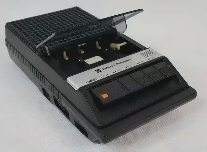 我第一次看到这样像黑砖头一样的磁带式录音机(松下卡式录音机),还是上示范课时,有旁听老师现场录音。一位刘姓的小学同学买了一台小录音机,大清早录了广播体操,兴冲冲喊我去听,当时感觉好神奇。