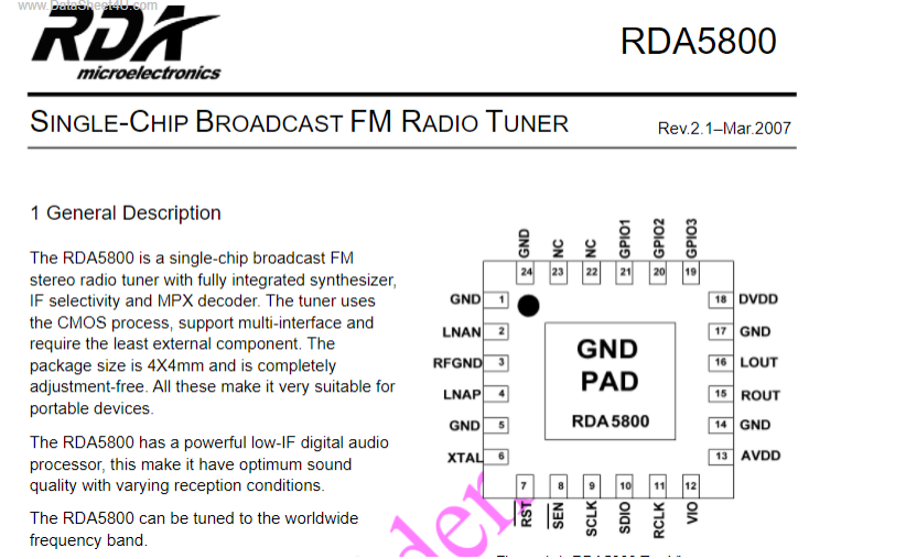 图注:2006年的锐迪科RDA5800是大陆第一颗FM集成电路SoC