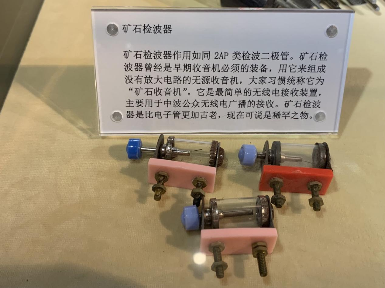 图注:玻璃管里一颗矿石构成矿石检波器,戴辉摄于上海无线电博物馆
