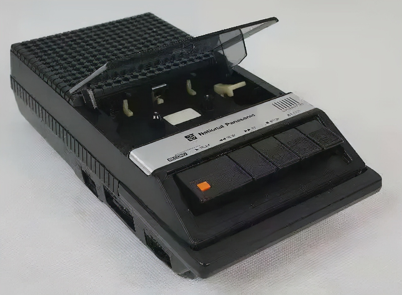 我第一次看到这样象黑砖头一样的磁带式录音机(松下卡式录音机),还是上示范课时,有旁听老师现场录音。