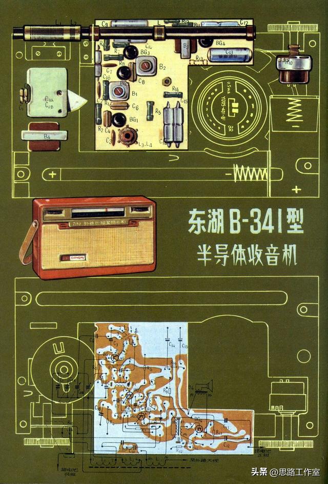 东湖牌B341型晶体管收音机 内部示意图