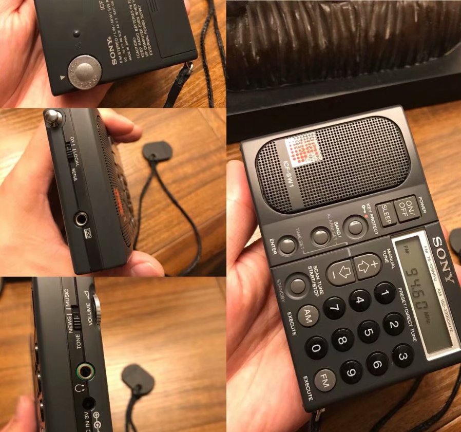 90年代东芝索尼三洋飞利浦等IC大厂的收音机芯片产品已经极其成熟和丰富,而且价格相对低廉,因此集成电路收音机也迎来了鼎盛时期,无论是国机还是洋机,各种机型层出不穷,尤其是洋机的高端机也大多诞生在这个时期。例如索尼数调全波段便携机型,就涌现了7600系列,SW55,77,07等高端机。SW1这台精美的迷你小机也是那个年代的产物,外形只比烟盒略大,可谓是最小巧的数调二次变频立体声全波段机,覆盖FM76-108Mhz,AM150-29999Khz以销售地不同而略微不同。该机有两个版本SW1S和SW1E,机器本身没区别,只是随机的附件不同而已,可以认为S是高配版E是乞丐版。高配版包括3V稳压电源,耳机和有源天线AN-101及放大器。该机体积虽小但是性能和使用体验并不差,是出差旅行,随身携带的好机。