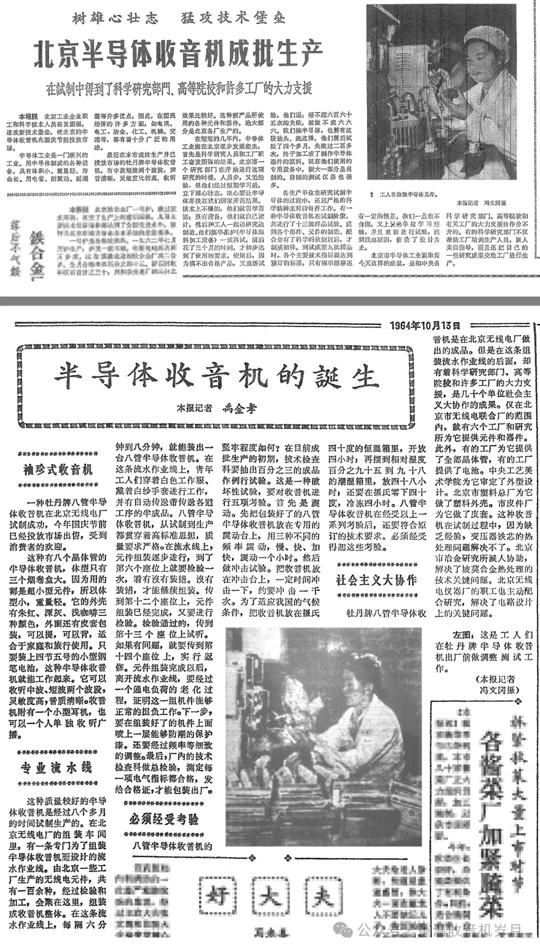 图6 媒体报道北京市第一台晶体管收音机(左为《北京日报》,右为《人民日报》)