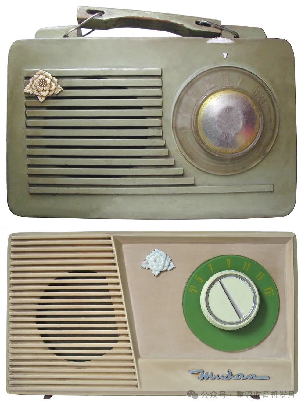 首批产品中数量最多的是金属度盘、金属拉网中间无牡丹花的版本(见图16、图17),这种样式的产品一直生产到1965年底。相比之下,消费者普遍喜欢有牡丹花的版本。