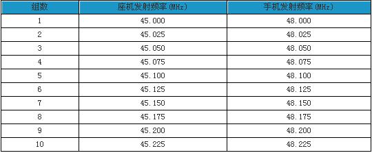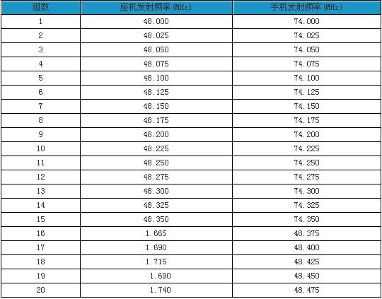 现行标准是45M和48M共20个频道,座机发射在45M,手机发射在48M,一般我们接收座机的就够了。频道特点是,从45M开始,间隔25k,连续排列: