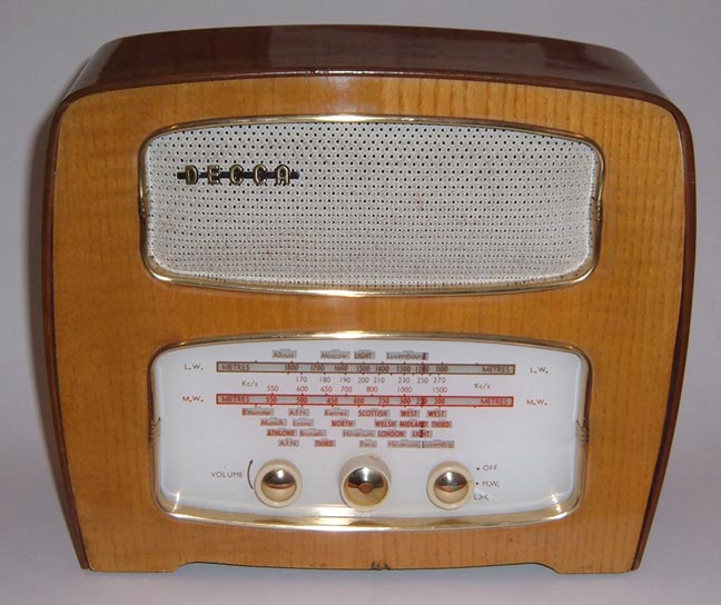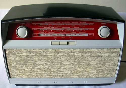 1949年,英国穆拉德公司设计的MAS-276收音机,被设计界视为50年代收音机的基本模式,这种用深色外框把钮、刻度板、喇叭等部件集中到面板中间的设计成为20世纪50年代台式交流收音机的典型。