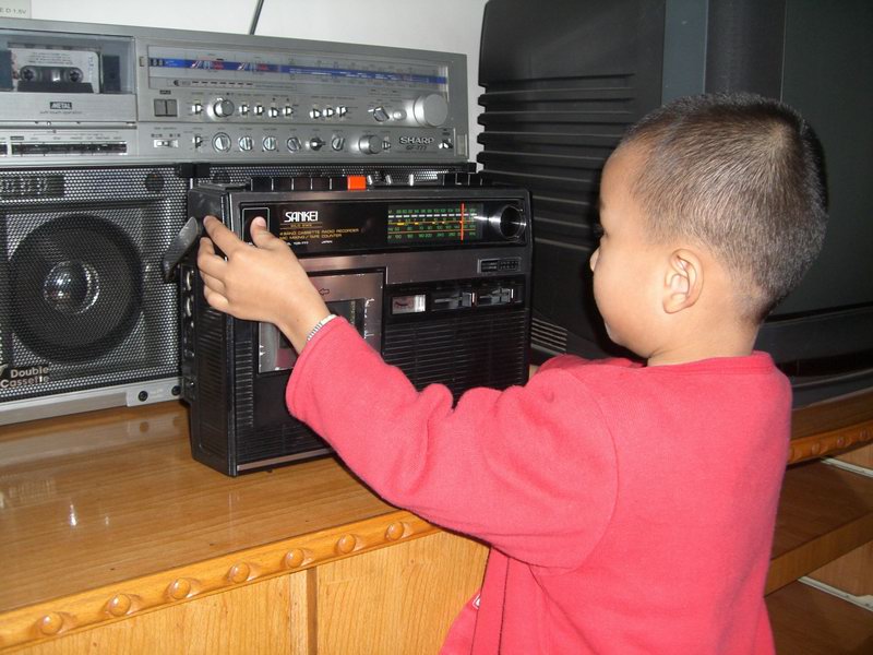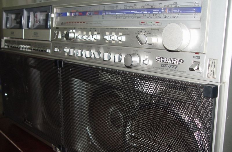 这些机器中,sharp777状态最好,成色接近9成新,磁带、收音都OK,四个大喇叭一字排开,显得非常壮观。三岁的儿子一下子就迷上了这个大家伙。