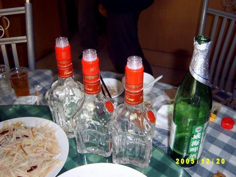 啤酒不算那3瓶52度全兴大曲空了2.8瓶!我只知道我是直着出饭店大门的,柔人还很歉意地道“下午还有事,只拿了3瓶”。天!要下午没事,要不“只”一下那该多少瓶!!!
