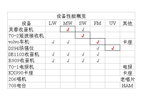 由于习惯,喜欢给东西排队,于是对这些设备也列了一个清单,以便居高临下总揽全局。也由于习惯,喜欢求全,从长波、短波到调频,从电子管、晶体管到集成电路,从便携到台式,从民机到军机,从接受到电台,甚至从灰色、蓝色、黑色到银色、绿色,都想要,也都基本有了,随着目光的扫过,满足感油然而生!