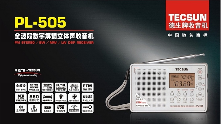 赠品:凡直接向东莞德生公司邮购、通过德生淘宝店网购以及上门直接购买PL-505,每台均附送价值20元的赠品一套,含2节1000mAh充电电池和1根USB充电连接线。