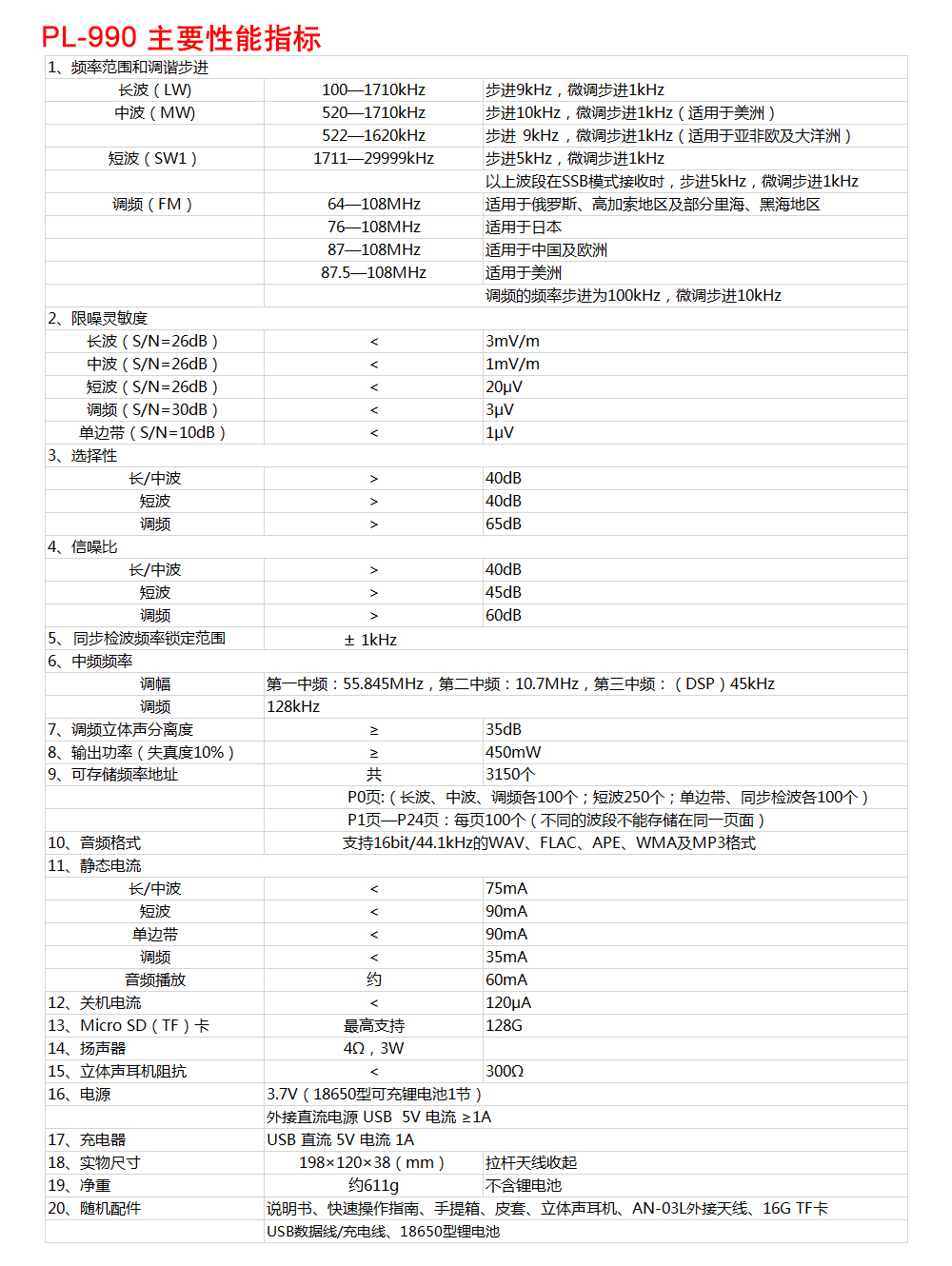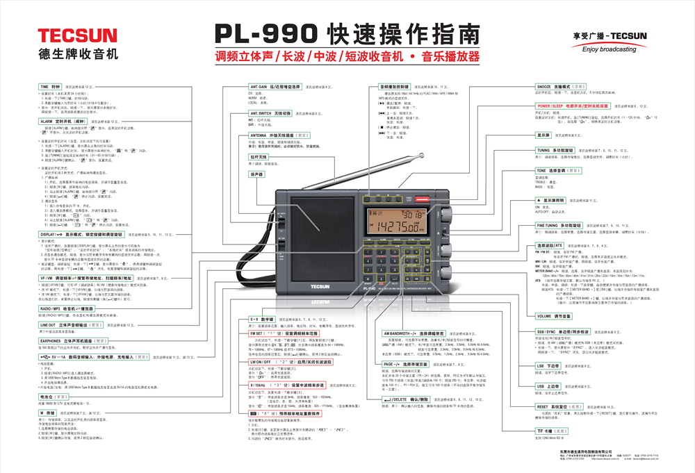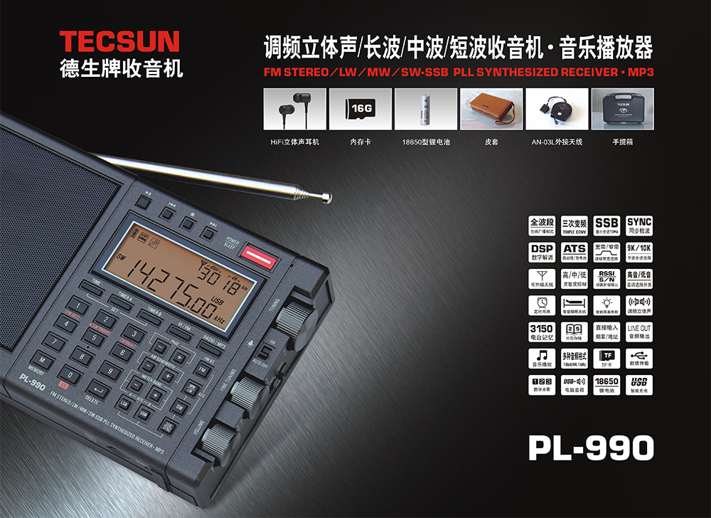 二、TECSUN/德生 PL-990 便携式全波段收音机/音乐播放器
