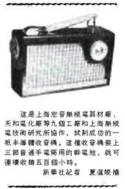 还有一个问题就是,上海宏音电讯器材厂于1958年3月11日成功研制的中国第一台晶体管收音机,实际上并没有量产,因为最关键的晶体管并非国产,而是进口。