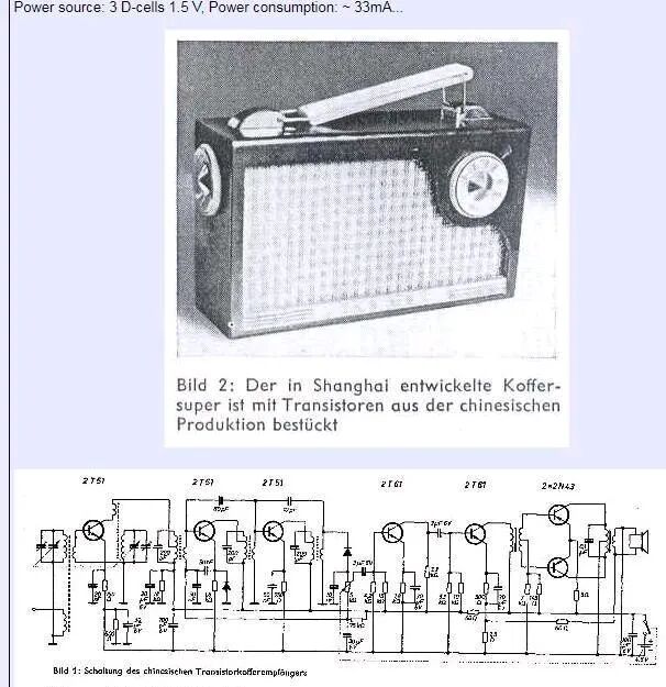 1958年3月11日,上海宏音无线电器材厂工程师张元震领导的试制小组,与天和电化厂等9家工厂以及上海无线电技术研究所共同协作,试制成功国内第一台晶体管收音机。该机为便携式7晶体管中波段超外差式收音机,木质外壳,带提手,整机尺寸为270毫米×160毫米×92毫米。所有50多种零件均实现小型化,使用的7只三极管和2只二极管全部是国外产品。