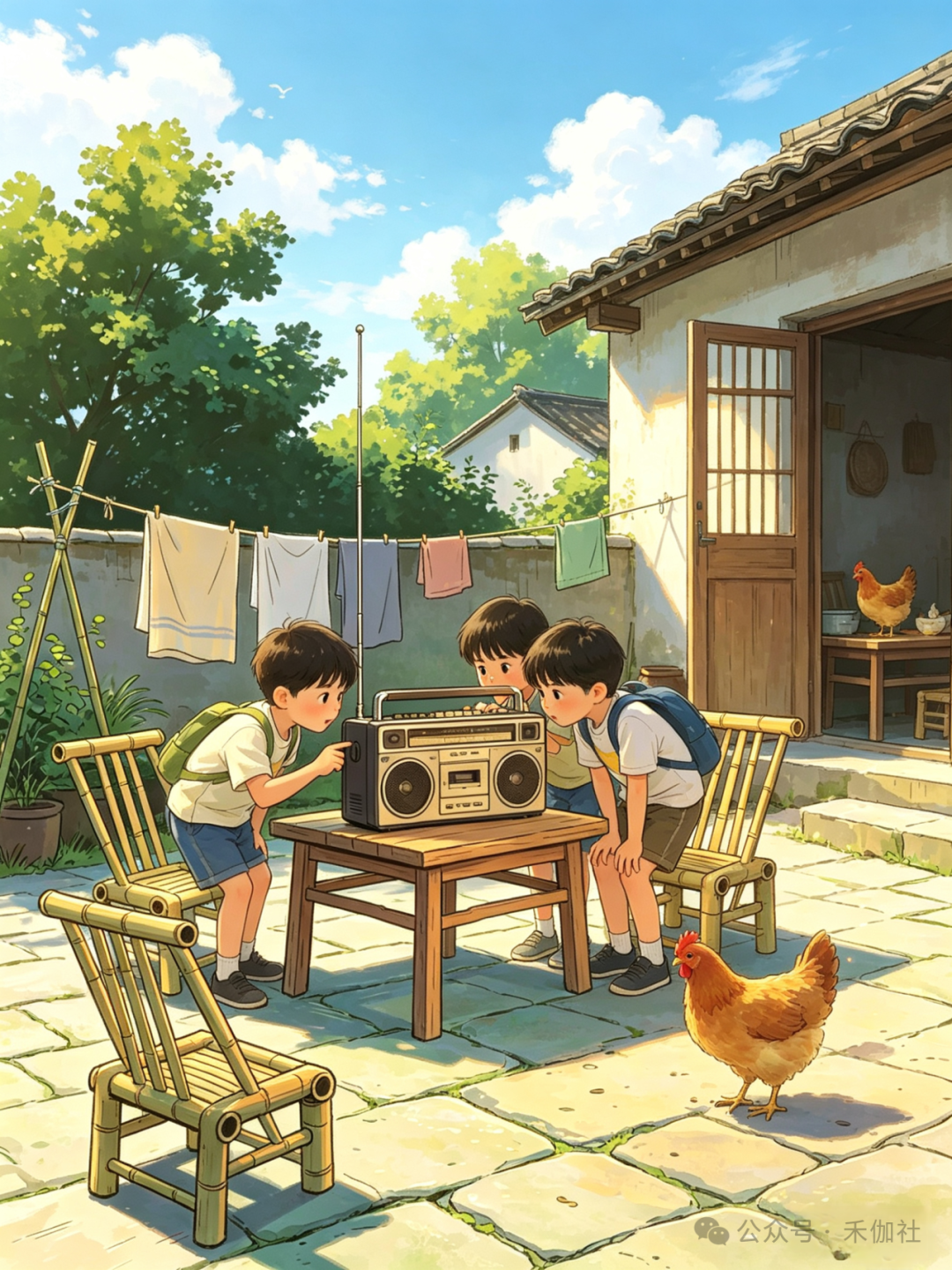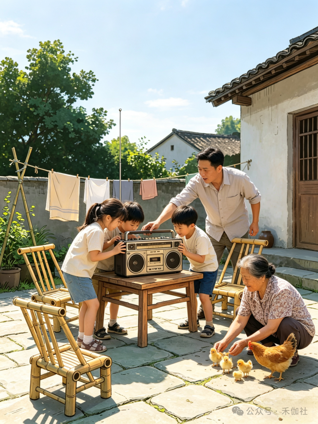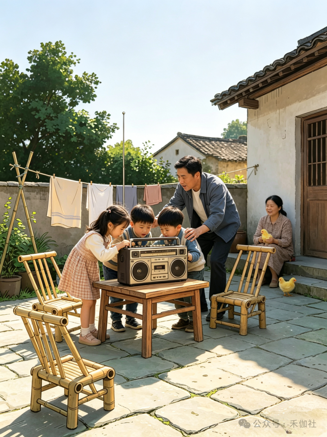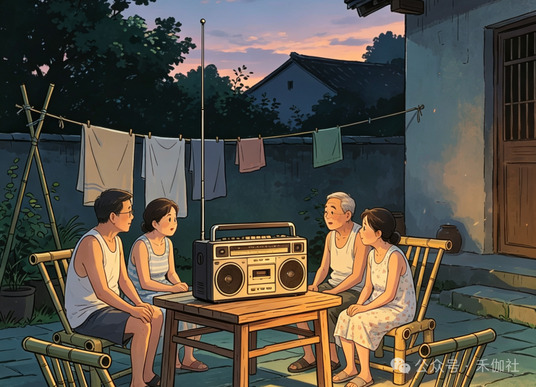 乡亲们搬来自家的小板凳,摇着蒲扇,三三两两围坐在一起,就等着舅舅拧开收音机。评书里的侠义故事扣人心弦,戏曲唱段婉转悠扬,时事新闻新鲜有趣,声音从小小的喇叭里传出,传遍整个村落。