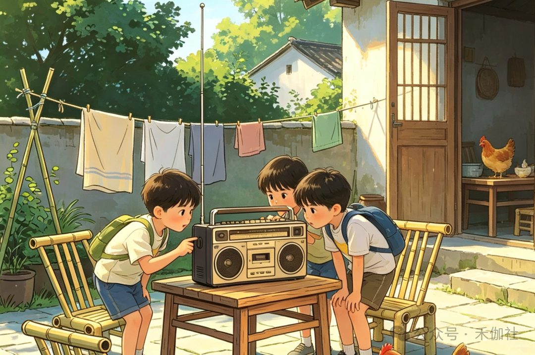 那份孩童按捺不住的探索欲,让我们总忍不住趁舅舅外出、外婆忙着做家务时,偷偷溜到放收音机的桌前,踮着脚尖,小心翼翼地拧动旋钮、轻轻拉扯天线,学着大人的样子摆弄,一心想琢磨出它发声的秘密,满心都是找到新奇声音的期待。