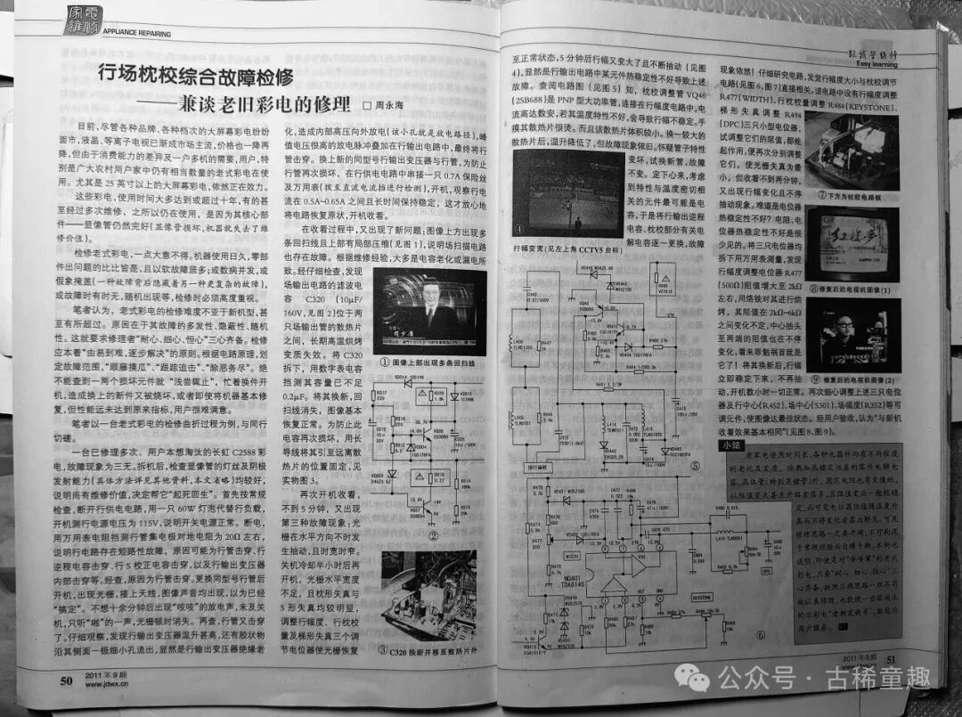 在《家电维修》上发表的技术文章占据整整两页版面,给读者提供了大量珍贵的检修经验。